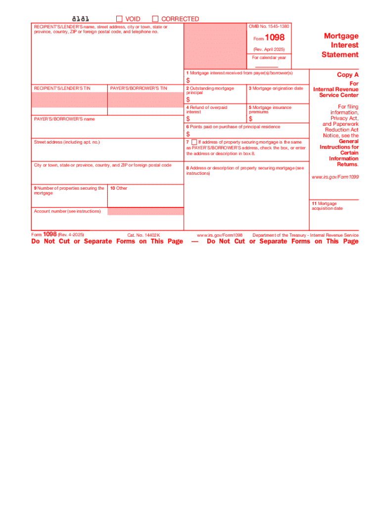 IRS 1098 2025-2026 free printable template